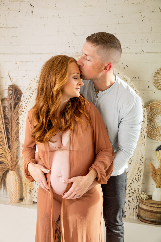 Both studio and outdoor maternity sessions can work beautifully with partners or kids.