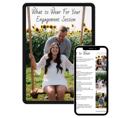 Not sure what to wear for your engagement photos? We've got you covered! Download our FREE "What to Wear Guide" and discover the secrets to looking your best in every shot. From coordinating outfits to choosing the right colors, this guide has everything you need to make your photos truly stunning.